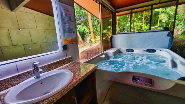 此别墅配有空调,提供带大冰箱和炉灶的厨房,让您可以尽情放松享受。独享私人露台。配备带有线频道的 40 英寸平板电视,此外还可使用免费无线网络,方便您与朋友保持联系。便利服务设施包括微波炉和茶具/咖啡用具。