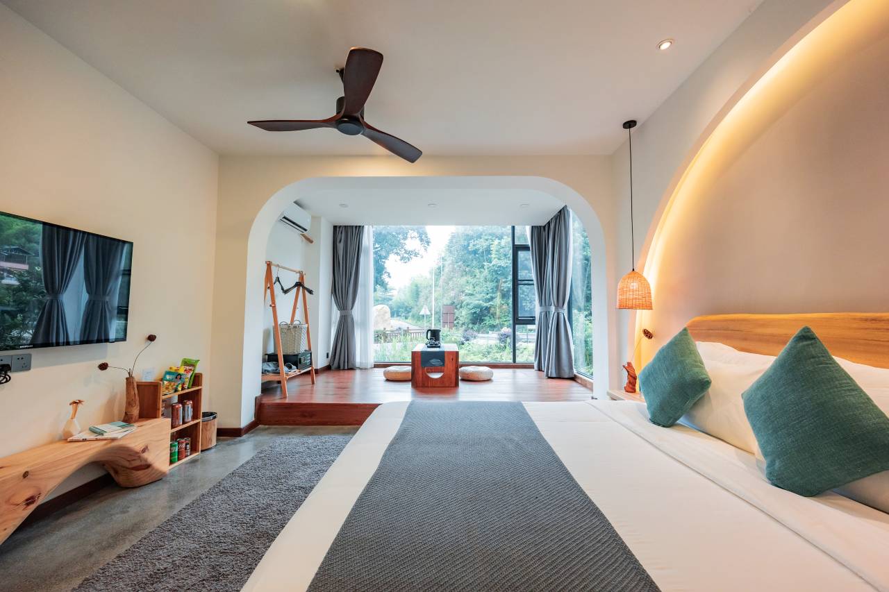 房间设施齐全,用品都非常满意,干净卫生,服务业特别好,以后出游会第一时间选中她们品牌,退房还送了竹叶菜,老板很棒。