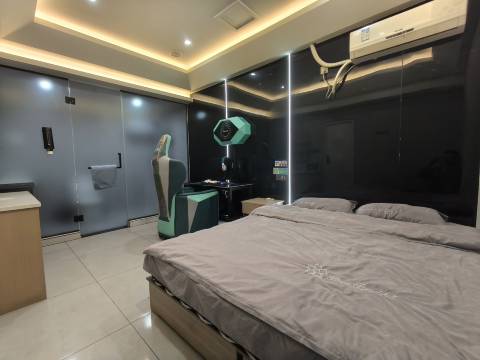 服务贴心,前台小哥哥耐心解答问题。房间内电竞设备专业,灯光设计超有感觉。卫生条件优秀,前台有售卖水,细节满分,点外卖也方便,附近都是好吃的,值得五星好评!