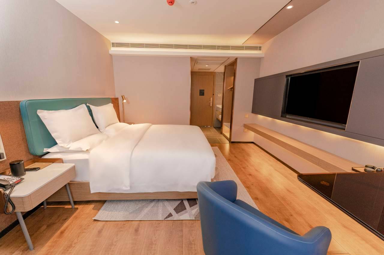 酒店整体体验远超预期!大堂简约大气,香氛舒适不刺鼻,公共区域绿植错落有致,瞬间消解旅途疲惫。客房空间宽敞明亮,搭配100%遮光窗帘,一夜好眠到天亮。卫生细节拉满,房间角落无灰尘,卫生间干湿分离彻底,热水供应稳定,品牌卫浴用品香气清新。工作人员全程热情专业,前台办理入住3分钟搞定