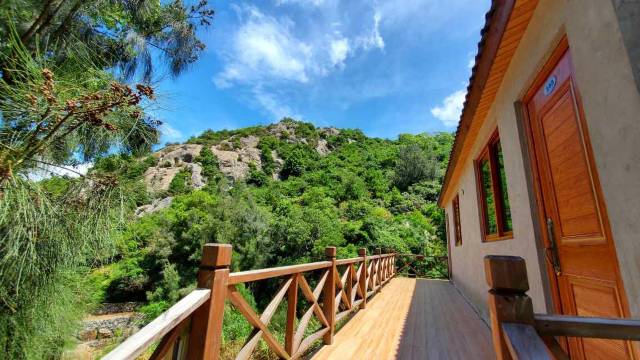到了之后发现,可以十分充分地说,这是嵛山岛环境最好、最诗情画意的山庄民宿了!第一天天气超好,有阳光[太阳]、山风吹拂树枝摇曳、仿佛得到了一场大自然的 ASMR。