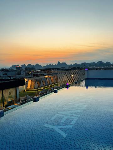 冲着屋顶泳池下单的酒店,果然没失望,水质好,孩子玩的很开心,工作人员也很负责,全程看着孩子,楼下有一家新锅记饭店,有特色味道也不错,打车10分钟就到景区,方便快捷