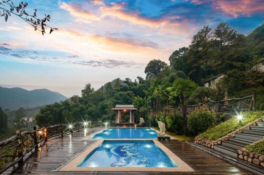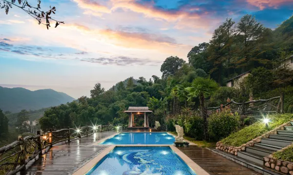 棕榈树、石阶小道、喷泉小品、懒人榻、亲子泳池、发呆亭……【云端·溪谷私汤美宿】让远方的您深吸醉人的负氧离子,看最纯净的山景,享宁静而致远。