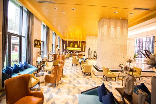 酒店坐落于遵义汇川区上海路333号,交通便捷通达——步行即达熙园等多个公交站,距遵义站约18钟车程,毗邻凤岭庄园、苏州路美食街,属于城市核心c位繁华地带,让您出行无忧。 吃遍黔北风味:步行1分钟可达刘二羊肉粉、周边还有骆锅、酸汤牛肉等特色美食,满足味蕾需求。购物超方便,步行2分钟至悦萃城生活广场,10分钟可达国贸春天百货,繁华商圈举步即达。 住得舒心惬意:房型丰富多元,涵盖豪华房、行政房、特色亲子房及带浴缸/麻将的套房,房间均配备干湿分离卫生间、冰箱、保险柜等设施。酒店内设恒温泳池、有氧健身房、宴会厅及多媒体会议室,满足休闲、会务等多样需求;更有7:00-12:00超长时自助早餐、精致下午茶与深夜宵夜,24小时管家服务、洗衣、机器人送物等贴心配套,细节拉满。 玩转红色与生态遵义:驾车5分钟可达三阁公园,10分钟即达1964文化创意园、《伟大转折》实景演出,13分钟可至遵义会议会址,周边还有冰雪海洋世界、汇川国际温泉城等众多景点。恰到好处的服务与核心区位,让您尽享自在旅程,欢迎入住体验!