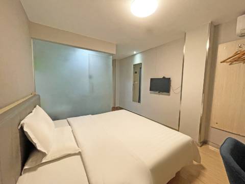 房间很干净,卫生到位,床铺睡得狠舒服。空调、网络都很好用,周边有很多餐饮很热闹。
