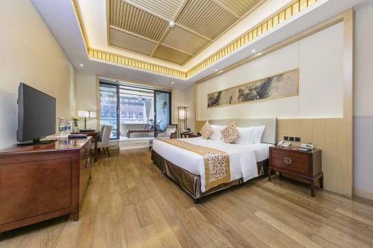 酒店配套住宿、餐饮、温泉、健身、会议、娱乐、会展等,集温泉养生、商务会议、度假休闲于一体,占地面积约27,000平米,建筑面积近70,000平米。