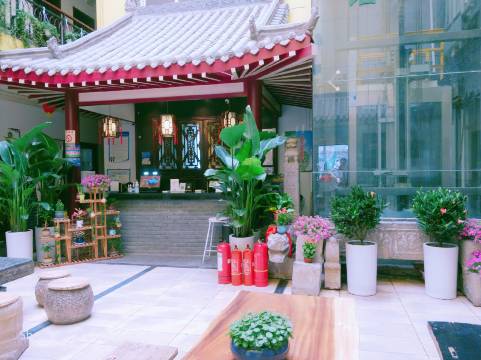 酒店具有关中庭院式民宿特色,典雅而舒适,设有茶餐厅、多功能厅、商务中心、小超市等多项服务设施,风格传统独特,保持了原汁原味的庭院式古韵风貌,精美的皮影艺术(雕刻及彩绘);独立观光电梯直达各楼层,保安24小时全天候巡查,保障入住宾客的财产人身安全。