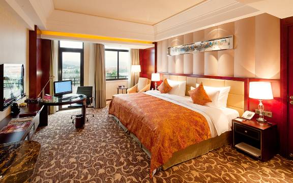 酒店位置很好,离高铁站很近,去哪里都方便。酒店很大有个风景不错的人工湖,房间也很大,湖景房的阳台和浴缸正对人工湖。早饭也不错
