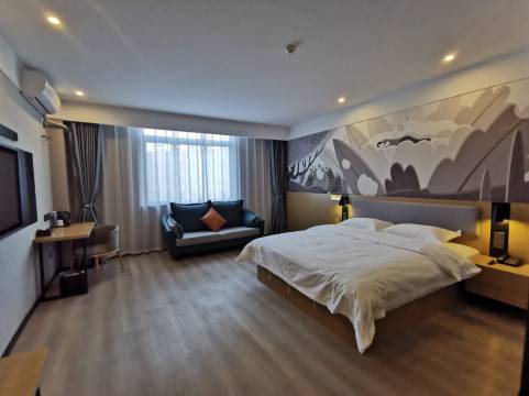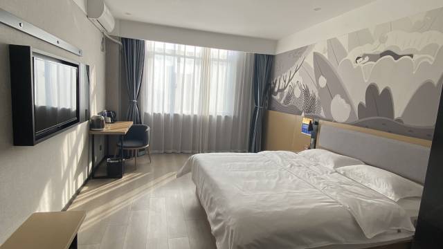 房间宽敞明亮,干净整洁,床柔软舒适,酒店门口有免费停车场,附近有充电桩方便新能源车充电,留下楼下有拉面馆,饮食方便。