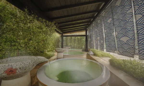 酒店是咸阳市一座国际度假酒店,距离西安咸阳国际机场40分钟车程,西安、咸阳两市驱车1小时即可抵达。酒店位于国家4A级景区袁家村黄金位置南门里,景区拥有五条主题街区(小吃街、书院街、酒吧街、祠堂街、回民街)汇集美食休闲娱乐等资源,北面是九嵕山唐昭陵所在,四面环山,视野宽阔,风景优美。 900㎡的室内汤池,55个户外大小汤池,结合中草药配方,使宾客朋友们尽享尊贵的汤池体验。江南风格的庭院式套房均配有私家汤池,齐全的居家配套设施,是您家庭出游、好友聚会的不二之选。