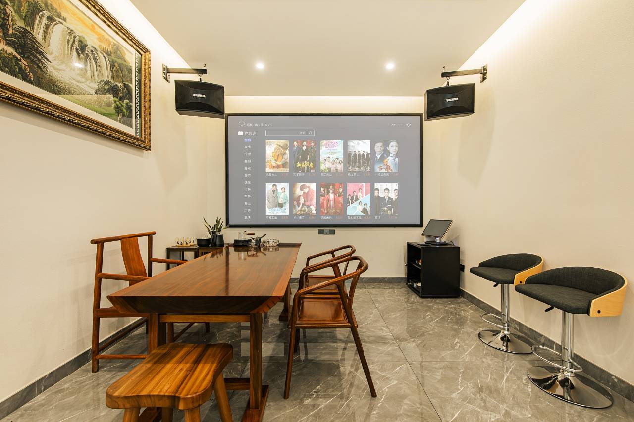 民宿创建以亲子度假为主,客房配套设施齐全,装修品质上乘。所有房间均采用巨幕投影,科技与温馨共存。房间均可眺望山景,露台,浴缸,智能马桶,迷你冰箱应有尽有。民宿公区设立的有高端会议室,KTV设备,麻将娱乐设备,围炉烧烤,儿童蹦床,休闲天幕,旅途中享受休闲。