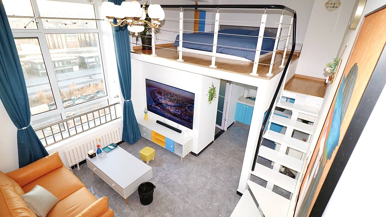 民宿位于北京东燕郊燕灵路甜城方立方D3楼栋,房型以小而美的LOFT为主,房间一楼为功能区(客厅影音设备、厨房、卫生间),二楼为休息室。全程自助入住,可满足聚会、出游及差旅的不同需求;
