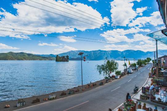很不错的客栈,阳台外就是湖景,躺床上可以看湖边日出美景。