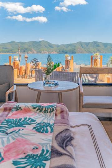 位置非常好,直接能看到泸沽湖,环境很安静,不吵闹,阳台是可以直接坐在椅子上看海的。