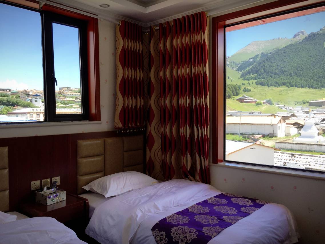 一家三口来郎木寺镇旅游,这是个很小的乡镇,没有酒店,大多是自建宾馆,因此没有酒店条好,但也更人性化。老板给我们发了附近游玩和美食攻略,卫生条件也比想象中好,最重要的是有电热毯,晚上8度能续命。有点高反老板也冒雨帮我们去医院拿氧气袋。窗外就可以看到四川的寺庙,走路5分钟就进了景区,是最漂亮的峡谷草原四川寺。推荐。