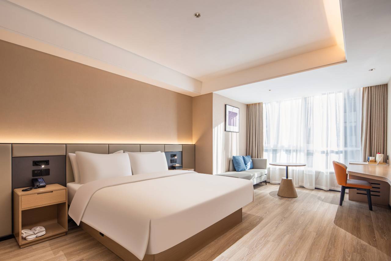 酒店是华住会成员,房间设施,房间面积,卫生状况,包括前台服务都和同是华住会成员的某季一样,停车场也很方便。办理入住赠送的伴手礼里面的东西非常实用,很喜欢,尤其是蒸汽眼罩很好用。周围吃东西特别方便,尤其是正大广场里的各种美味,总有一款适合你。前台的几位帅哥美女都和蔼可亲,让人感觉暖心。房间很暖和,很安静。下次还会再来。
