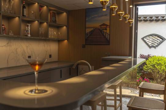 这六个唯美的词语作为二层楼的容房名,将「溪桥」作为二楼多功能茶室之名。