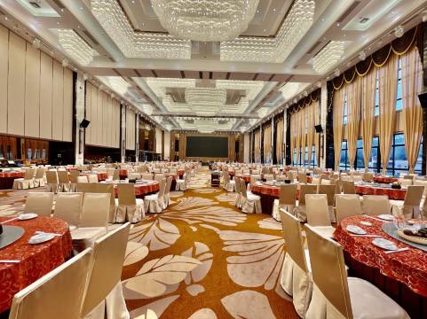 娱乐、豪华客房旅业于一体的大型酒店。酒店环境优雅,筵开380席共有宴会厅8个,包房35间。