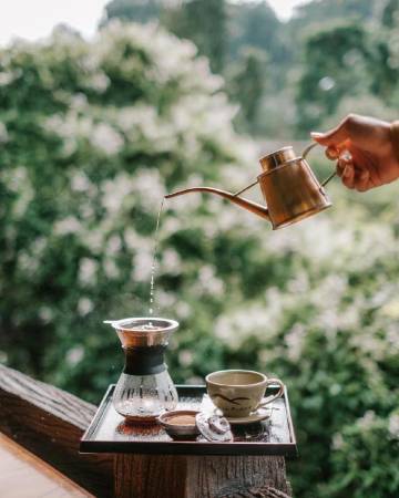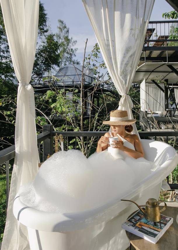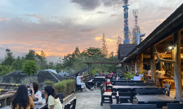 这是一家氛围感很好的酒店,在山上,早上有雾。食物也还不错。
