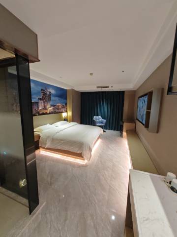 房间很大,非常干净整洁。床品都很新,智能窗帘。干湿分离,配有一次性马桶垫。早餐种类丰富多彩,干净可口。服务员态度很好。瓶装水机器人随时送到。酒店大门外有免费停车场,两边都能上路出行。