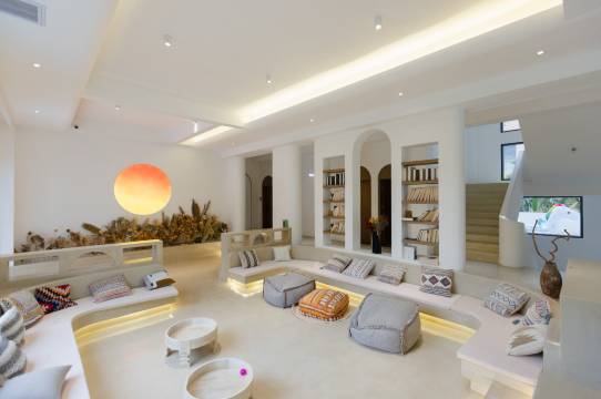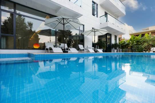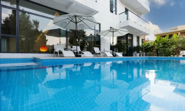 🌊蓝白配色的泳池边种满椰树,阳光洒下来波光粼粼,躺漂浮垫上拍照直接封神!游完泳去泳池边的躺椅上晒太阳,仿佛在爱琴海边度假~