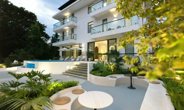 • 白色热带庭院+碧蓝泳池+满院绿植,随手出片,被夸像巴厘岛