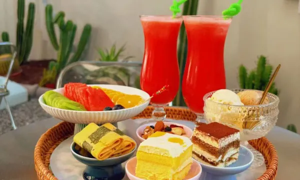 早餐的米线鲜掉眉毛,现煮的鸡汤底,加一勺本地小米辣,暖心又暖胃。下午茶摆在庭院的小桌上,芒果切得超甜,花茶冒着热气,慢悠悠喝着,看阳光透过树叶洒下来,这才是度假该有的样子啊~
