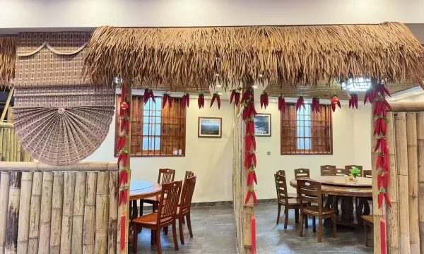 住宿餐饮一体,价格实惠超值。在路边,对过就是观景台。 设施齐全古朴典雅有特色。服务热情周到诚恳细心。有问必答的那种。饭菜可口美味。