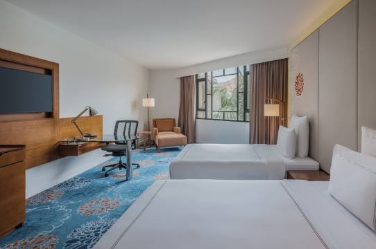 房间很宽敞,带一个小阳台,卫生也不错,酒店的泳池有滑梯,小朋友很喜欢,早餐也很丰盛,很多外国游客都很nice,下次优选入住