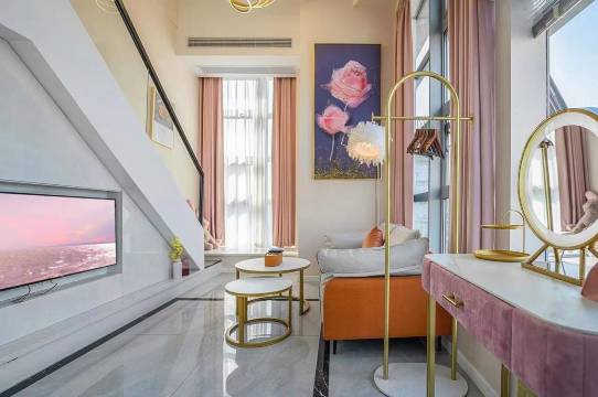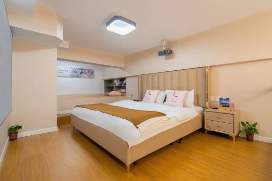 房间空间巨大,环境卫生,晚上睡觉安静,窗外风景无敌。两个卧室都有空调,投影比较大,睡觉舒适,外卖有一楼外卖箱。