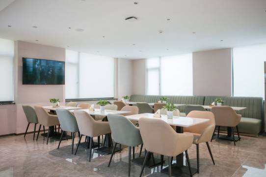 环境·时尚轻松,明窗客房坐拥城市美景,为客人营造轻松精彩的人居环境。酒店客房宽阔,均配备高档床垫洁具、全棉床上用品、恒温恒压速热的淋浴、智能自动窗帘;简约现代的家具,精致嵌入式LED电视,温馨考究的装饰,处处体现了人文关怀。酒店客房及公共区域WIFI全覆盖,智能机器人便捷送物,大堂茶饮自在随心。早餐厅环境雅致,网红露台可供休闲拍照。