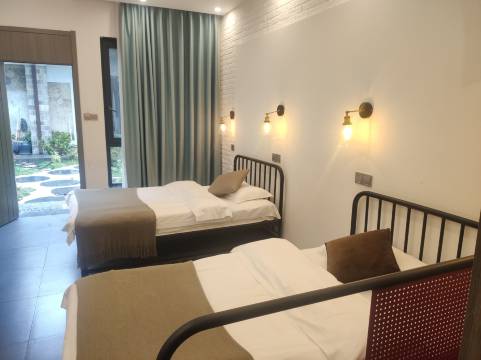 性价比极高,一家人住只用这一个房间就能搞定,酒店就一层,有点类似四合院那种类型,环境清雅,非常不错,但是有一点,总觉得厕所窗帘不是很有安全感😂建议换一个私密性更好的