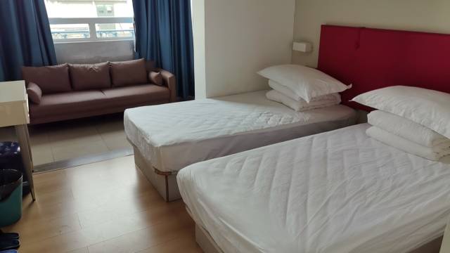 来广州找朋友玩,最后一天自己订的一个小房间,房间卫生环境挺好的。离火车站很近,走路二十分钟就能到了,非常方便,服务态度也比较好。小房间里设施也比较完善,有空调,有个试衣镜,有个茶几,一个人住空间也给够用,窗外风景也不错。
