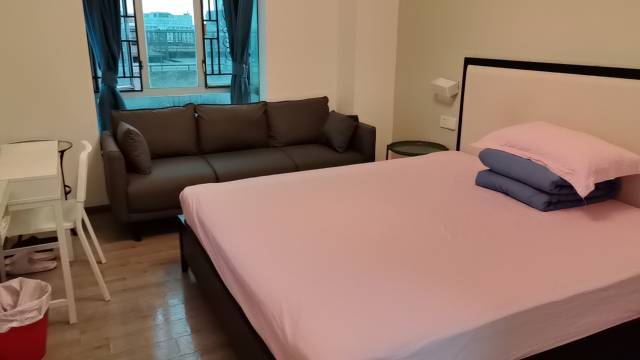 这里酒店公寓的老板娘妈妈热情好客👌地带我们挑选房间教用密码开关房间感觉很安全😎,经常满房需要提前🕐预订;房间宽畅装修如新优雅的淡蓝色非常喜欢👍,朝东的飘窗阳台可以坐着歇息看到外面的景色😘;短暂的旅行舍不得离开舒服温馨美食天下的广州,希望下次还能有机会来!😇😋😍