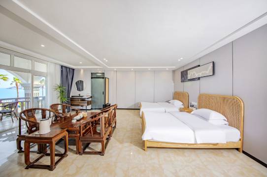 房间位置非常好,出门就能看到海,老板人很好,很贴心,服务非常好,出去旅游那么多次,这个老板真的是非常用心,非常好。正好碰到大年初四是莆田过大年,老板很贴心准备了年夜饭,年夜饭很丰盛,老板自己做的,味道也不错!超用心,还给小朋友送了烟花,晚上在沙滩边放烟花,真的好漂亮,好浪漫呀