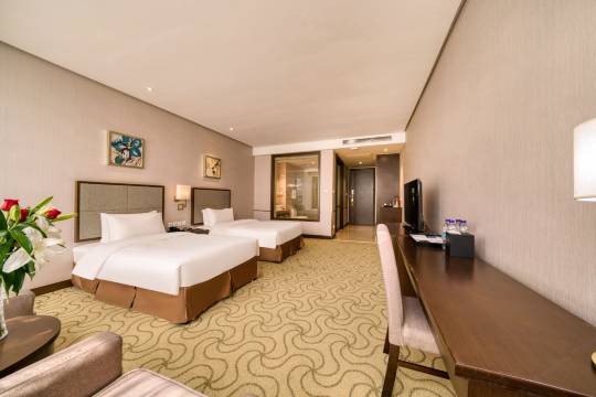 房间干净整洁,设施齐全,洗漱用品特别是洗发水沐浴露都是佰草集的非常好,早餐很丰富 赶上小年还帮忙免费升级了房间,服务人员态度很好,值得点赞
