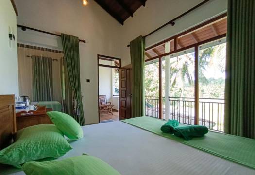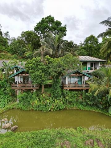 热带雨林的美景尽收眼底,小院里就可看到远处的山雾朦胧。坐小突突车大概十分钟就能到雨林徒步入口。我们虽然只住了一晚,离开时真的很不舍。老板Sam是雨林导游,很专业,看到了非常罕见的翠绿的小青蛇。