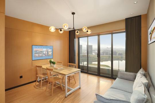 精品风格设计极具现代感。所有房间设施齐全让您充分体验“生活的艺术”。公寓提供一流的“管家式”服务,24小时的安保服务为您的“品质生活”保驾护航。客房直面悠湖湖畔,景致优美,生态宜人。