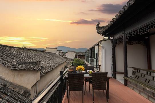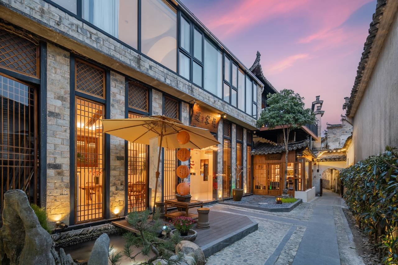 酒店座落于中国“画里乡村”—宏村风景区内,老村口附近,紧邻宏村中心商业街,背靠宏村网红月沼、南湖,群秀环绕,曲径通幽,距离承志堂也仅几步之遥。客栈由徽派建筑改造,保留原始徽派小而美的建筑的同时又不失现代房间的舒适。双层楼阁,雕花门厅,木质回廊,古朴精致,私家庭院静谧隽雅,远观群山苍翠,近闻鸟语花香。