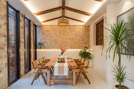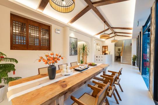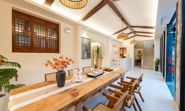 店内设有书房,会议室,棋牌室,茶室,客房和餐厅,客栈设施一应俱全,格调雅致,适合拍照打卡,且二楼设有阳台观景花园,餐厅以烹制传统徽菜见长,厨艺精湛,原汁原味,绿色健康。闲暇之时,约上三五好友,庭院听雨,回廊品茶,园中望月,小憩几日,探寻“画里乡村”的古朴,品味徽州文化的淳厚