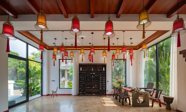 本墅,占地2800平方的滇之南高端小众民宿,坐落于一江连六国的澜沧江畔,距离机场、高铁站约15分钟车程。独栋别墅内绿植做景、鸟语为琴,静倚全景落地窗饮茶,入目皆是翠意。在这里您可以踱步院中赏版纳之景,也可以前往附近告庄寻觅星光夜市的异国风情,室内泡池、珍藏酒窖和影音区亦是不错的度假消遣。在静谧的房间中熟睡醒来,窗外是洒满阳光的小型自有园林,蓊郁的热带树木散落其中,处处都是出片的绝美机位。在别墅内散漫了一天,傍晚时分还能约上三五好友、或是和其他天南海北的朋友一起,围坐在壁炉旁烧烤碰杯,恣意欢笑,为自己造出一隅能尽情放松的天地。