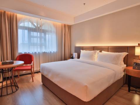 酒店客房部分房间为智能房型,配有电动窗帘、智能小乐客控,空气净化器、加湿器、酒店机器人等智能化设备为您服务。