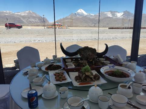 非常好的营地,位置满分,正对冈仁波齐,不出房间就可以看到。清晨和傍晚,坐在阳台上或者躺在床上,就能看到神山的变化,非常幸福。房间设施齐全,可以住四个人,两张大床,只是两个人住超舒服的。早餐比较一般,但是营地有一个川菜馆,味道不错。