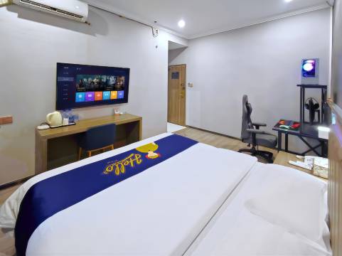 坐落在中山市小榄镇中心商圈海港城,距离小榄汽车站步行路程约15分钟,交通便利,在繁华中耀眼独特,酒店整体风格:大气明亮,单独的建筑屹立在小镇,是当地有名的地标,远远俯瞰犹如静卧在中山繁华夜海的一艘游轮,房间风格简约时尚,室内采光感柔和通透,高级的漫光轻轻的打在墙面,床头,卫生间,不妨碍照明,也加深了酒店内在的居住沉浸感。房间统一配备了软皮床沙发,超大的LED灯化妆镜,干湿分明的卫生间,房间个人平均面积在20平方以上,空间感十足,3D舒适的乳胶床垫让睡觉变得轻松快速,电竞设备更不用说了,3060的显卡让游戏轻松对战,专业选手级的设备,零距离体验电竞激情,可以开车过来,邀请女朋友或者好哥们一起过来开黑,免费停车无需担心