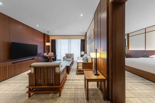 房间干净卫生宽敞,设施齐全,智能化程度较高,感应灯,电动窗帘开关,智能马桶,离高铁站比较紧近,交通方便。