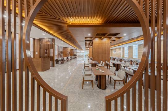 酒店高端大气,园林式的风格。客房很多,有两栋。都是中央供暖,天冷也很暖和。早餐,均价38元一位,很丰富。