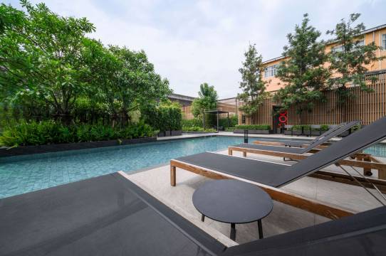 去bts大概步行10分钟,在两个站之间。 大型Lotus超市在On Nut 站出口,同时也有一个社区购物中心在另一个出口,酒店楼下有便利店,购物很方便。