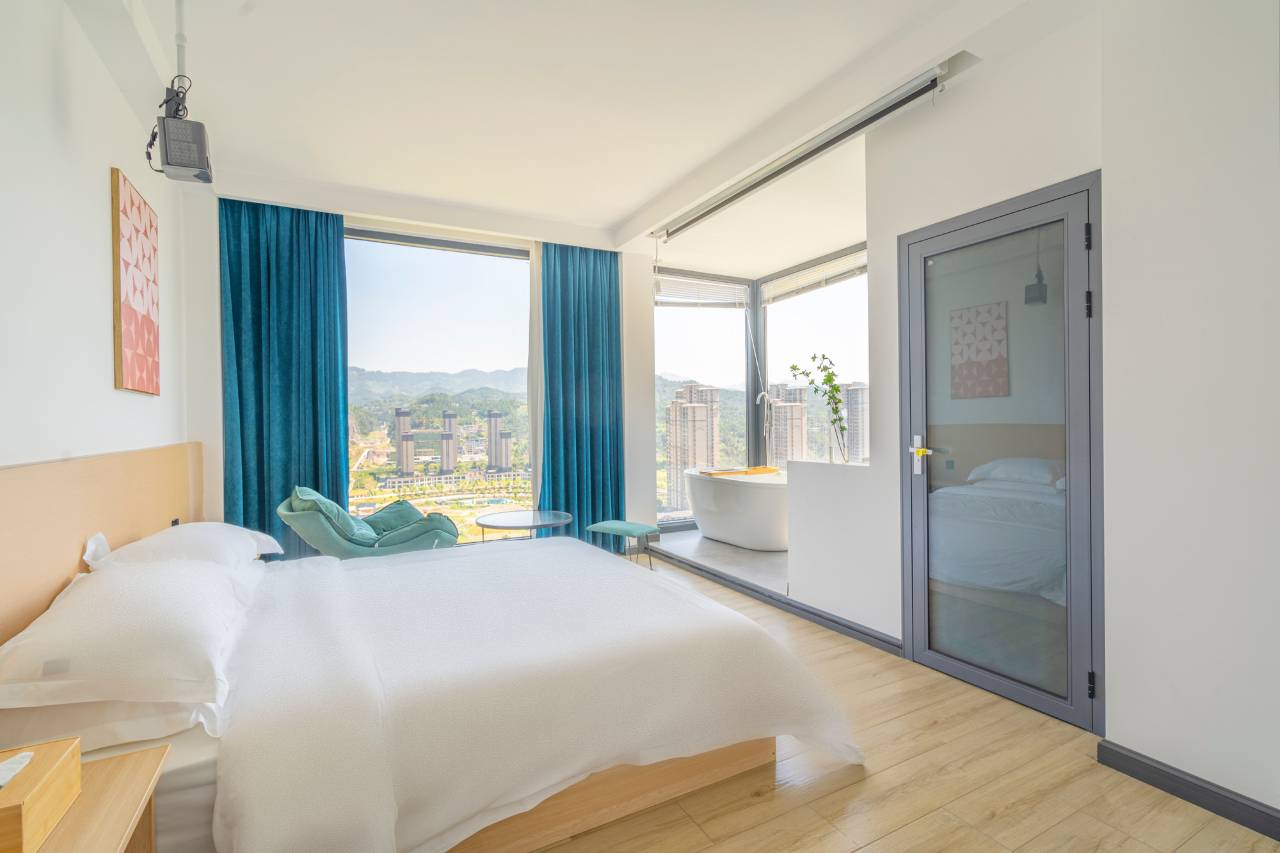 非常意外并且让我满意的一次民宿酒店入住。由于到恩施的第一站我们选择先去女儿城,于是找了一家女儿城附近的民宿。打车到了后,老板到附近接的我。跟着老板一路聊天,民宿是他和老婆一起开的,房子也是他们自己的,一点一点一花一草都是他们亲力亲为,民宿是现代山居风格的装修,很像我梦想的居住房子,很漂亮,也很静谧温暖。老板两口子很恩爱,待人也亲近,能感受到这种夫妻店带给我的温暖。当晚在民宿吃了一顿晚餐,就像在家里一样,不够老板娘会再做,想吃什么也会买回来。第二天早上的早餐免费吃,早餐种类也很丰富,来之前就搜了一下当地的美食特色,竟然能在民宿吃了一顿当地特色的早餐,豆皮+油馅儿,啊啊啊啊,真的好好吃,感觉比我后面在女儿城吃的还好吃些。房间有一大扇落地窗,可以看到外面风景,夜晚的时候也很安静,还能看到外面的暖黄夜景,好像宫崎骏电影里面的画面。房间卫生也非常干净,老板娘会亲自检查卫生,整个过道包括外面都很干净。以前不敢住民宿就是怕不干净,没想到这次竟然订到一个让我如此满意的民宿。恩施之行没有让我失望,第一站就给我留下了深刻印象。
