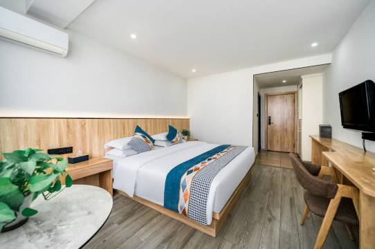房间相当干净,整洁,很宽敞,挺时尚简约的,并且视野不错,住得很舒服,价格也很经济实惠,附近吃饭逛街,以及去景点都很方便