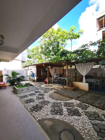 民宿每层的观景阳台,眼前一片木瓜地满眼翠绿,海景与各种花卉交错宛如置身油画美景中,黄昏时分日落余晖与庭院内的灯火交相辉映。